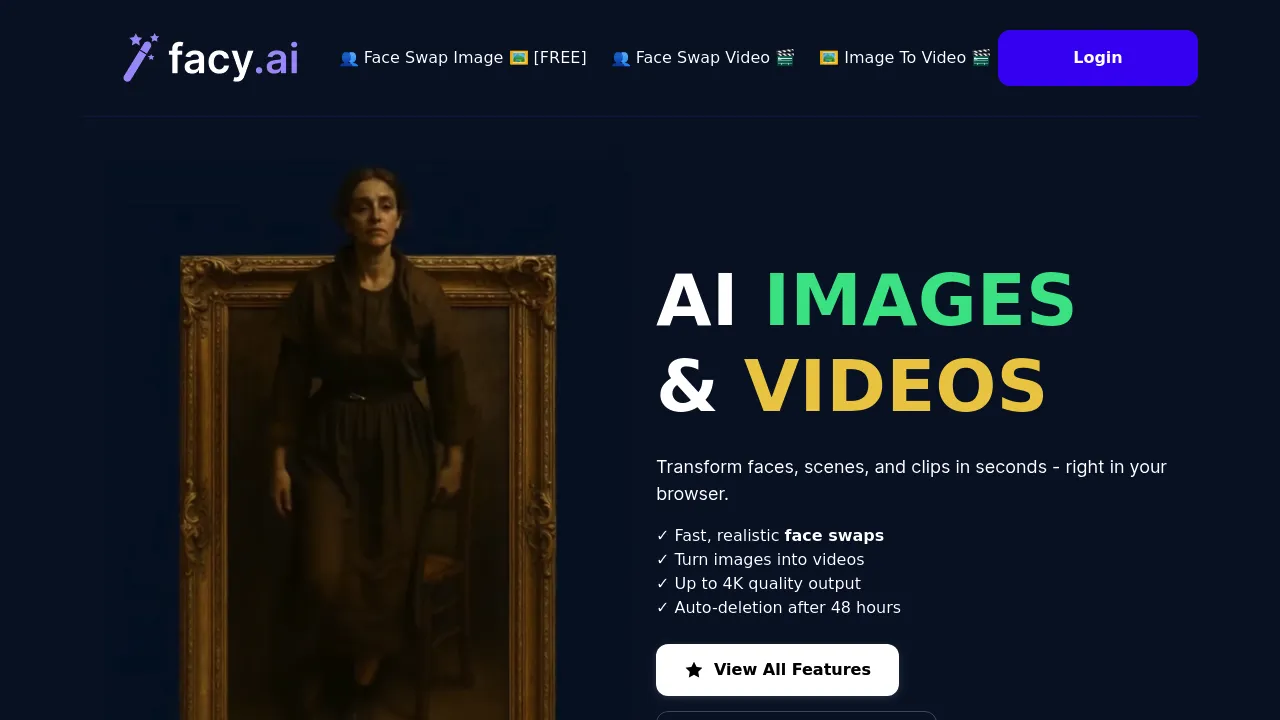 I tested Facy for face modifications and image upscaling, and I was impressed with how user-friendly it is. The AI-generated face swaps felt surprisingly realistic, and I loved that I could upscale images to 4K quality effortlessly. Plus, it offers more than 50 categories to choose from, making it easy to find exactly what you want. One feature I found particularly cool is the ability to modify both photos and videos, which adds a fun twist to content creation. The platform updates three times a week, so there's always something new to try out. I noticed the processing speed was pretty quick, which is a huge plus when you're just looking to have some light-hearted fun. However, I did run into a limitation with the quality of some outputs. While most images turned out great, a few faced issues with blurriness or inconsistencies, especially if I pushed the limits on stretching backgrounds. Just keep in mind that it might not work perfectly in every scenario.