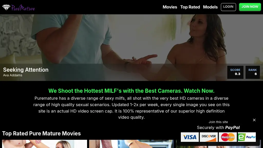 I tested Pure Mature, and I have to say, the clarity of the videos is impressive. They offer 4K content and a solid range of 1080p options, giving you a real sense of quality. The site features over 50 categories, so you’re sure to find something that piques your interest. Updates are frequent too, with new content added three times a week. One thing I noticed was the overall user experience—navigating through the site is smooth, which made finding specific genres easy. The MILF content is well-produced, and the performers seem genuinely engaged, which adds to the enjoyment. However, a limitation I encountered was the lack of diversity in certain categories. While they cover a lot of ground, some niches felt a bit underrepresented compared to others. It might not have everything you're looking for, but there’s still plenty to explore.